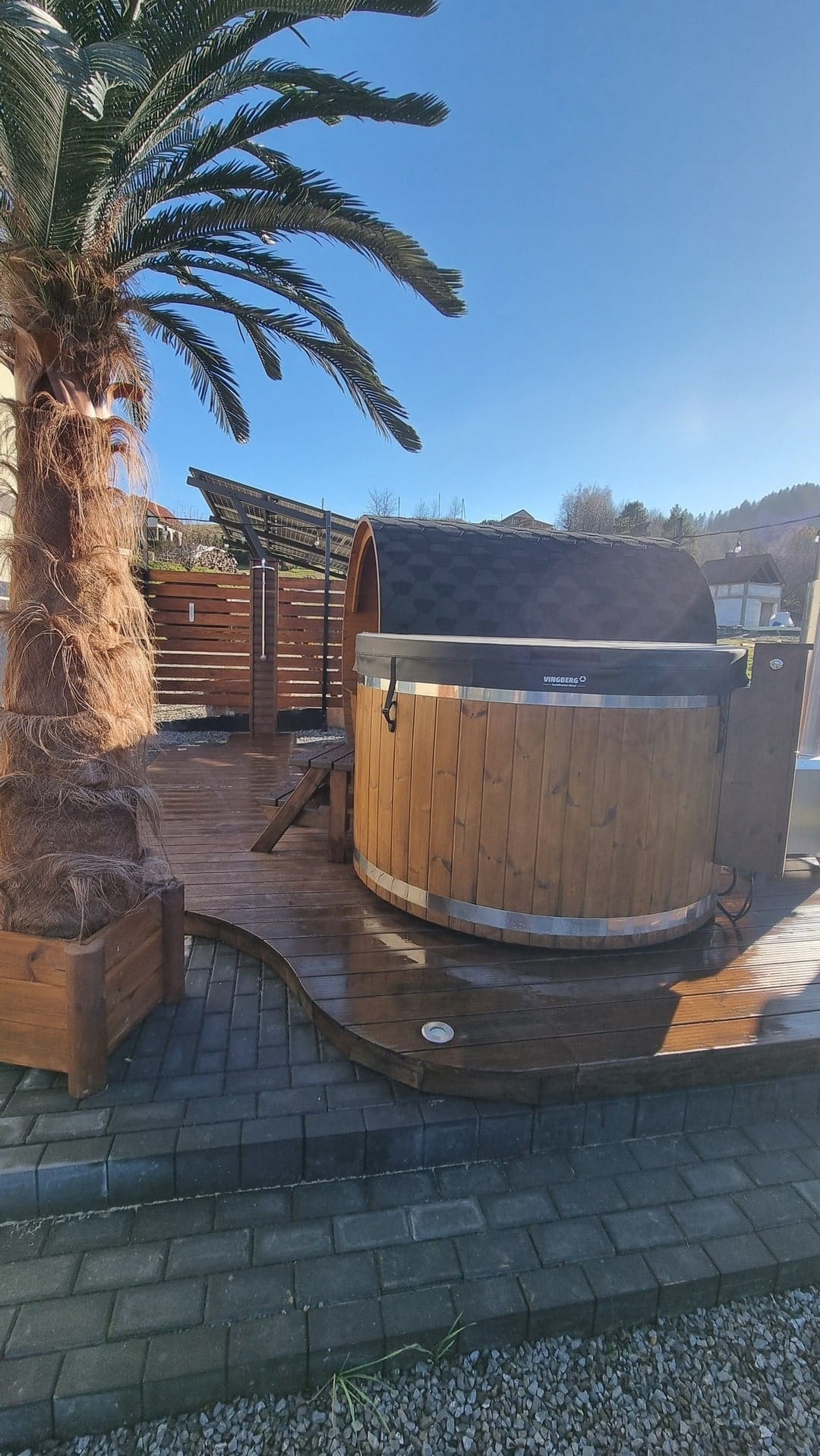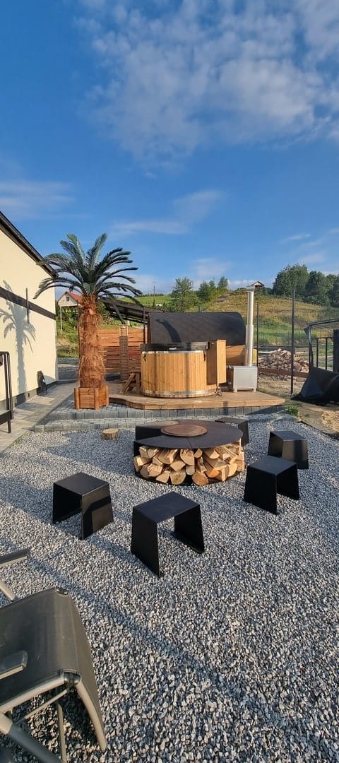 Zewnętrzna balia, sauna i miejsce na ognisko tylko do Waszej dyspozycji.