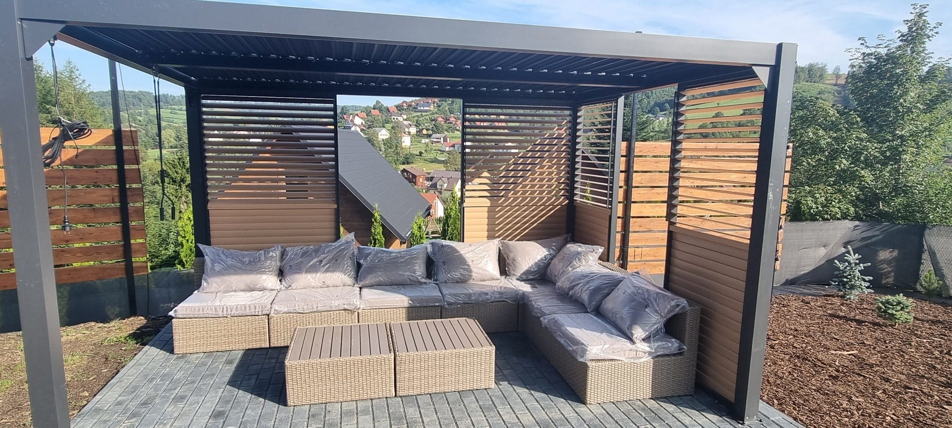 Przestrzeń do relaksu o każdej porze dnia, z widokiem na Bieszczady.